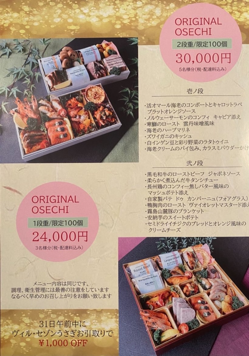 2022年ヴィルセゾン卯(うさぎ)のおせち料理予約受付中