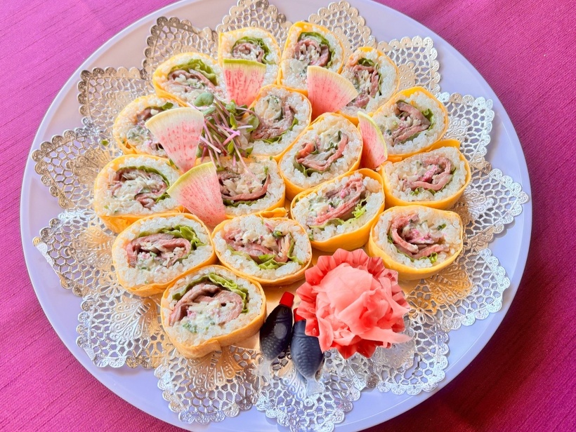 黒毛和牛のローストビーフと香味野菜の寿司ロール2本(16カット)